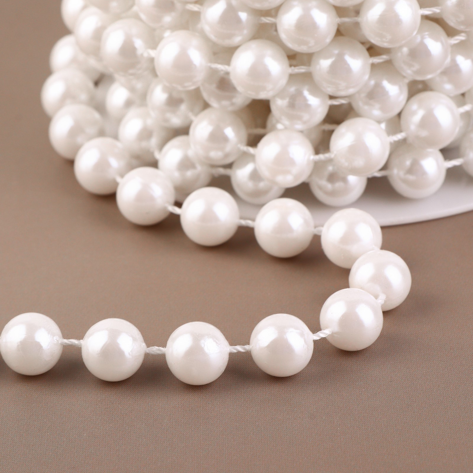 Жемчуг на нитях круглый, 10 мм, молоко