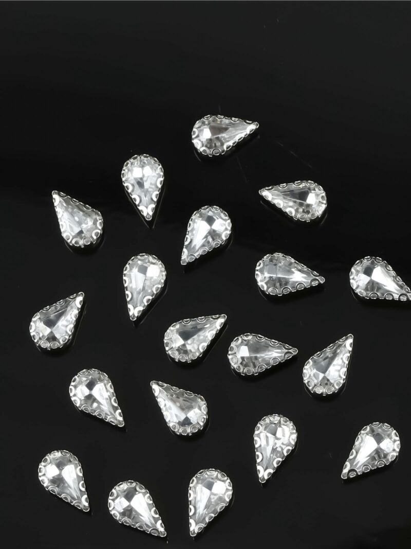 Стразы пришивные «Капля» в ажурной оправе, белые