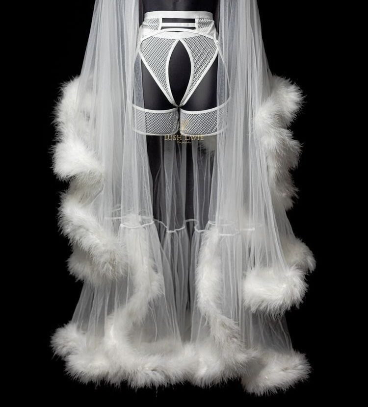 Тесьма с перьями марабу, 8-10 см., метр, белый