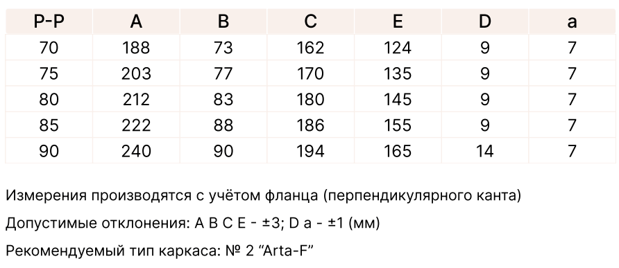 Ориентировочные рекомендованные каркасы 2 тип: